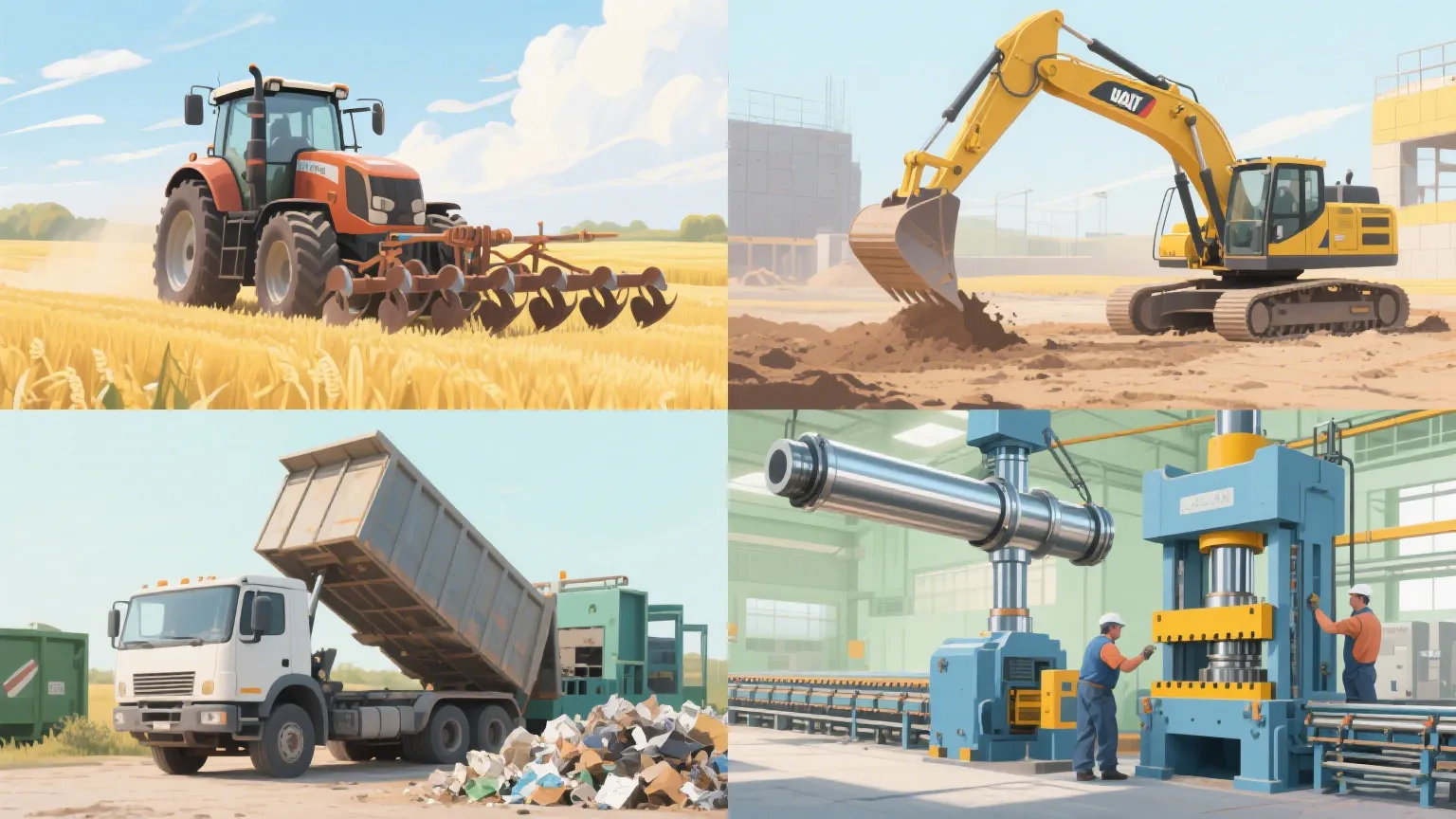 Abfallwirtschaft und Logistik benötigen einen hydraulischen Aufzugszylinder, der sie nicht im Stich lässt, und dieser passt perfekt. Muldenkipper, Müllkompaktoren, Industrieballen - sie alle zählen darauf, um das schwere Heben zu erledigen. Als hydraulischer Aufzugszylinder des Muldenkippers hebt es reibungslos beladene Betten, keine Idioten oder Stände. In Müllwagen oder Ballenbläschen ist es die Kraft, die Abfall- oder Bündelmaterialien dicht zerstört. Wenn Sie sich Tag für Tag mit unordentlichen, schweren Lasten zu beschäftigen, ist ein haltbarer hydraulischer Auftriebszylinder wie dieser nicht optional - es ist ein Muss.
